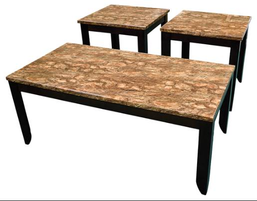 This table group features a faux marble top bark pattern in a sandy desert color, espresso finish on the legs, and is made out of select solids and quality veneers over wood products used throughout.Read More