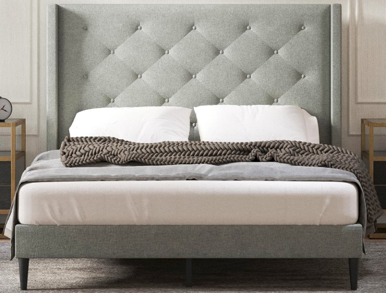 Elevate your bedroom space with this Carrington Upholstered Bed. The button-tufted design and wingback construction of the headboard go with any decor. The platform bed includes a headboard, footboard, and side rails, all in one box.Read More