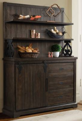 Include this vintage-look server with a hutch in your dining area. The charcoal finish, and rubber wood, engineered wood construction with acacia veneer to ensure this piece stands up to daily use.Read More