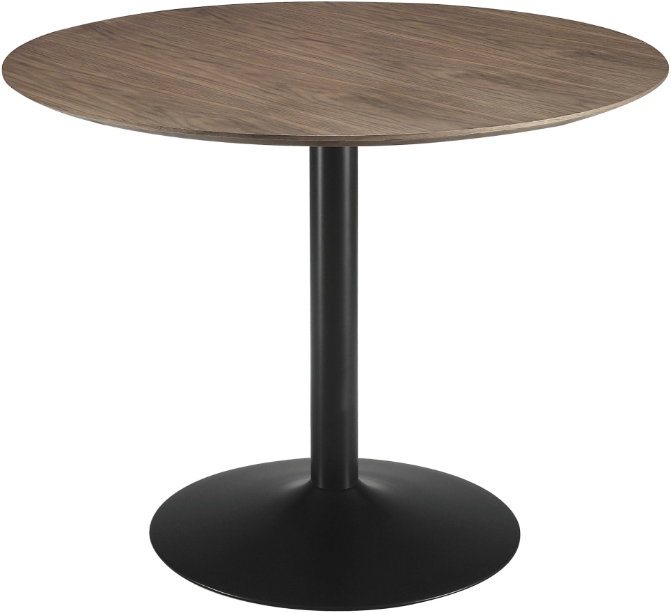 Smooth curves perfectly define the sleek, easy-going silhouette of this round dinette table. Perfectly sized for an eat-in kitchen or breakfast nook, the table features a walnut tabletop in a rich brown finish. A pedestal base flows into a perfectly round foot that emphasizes its compelling profile. Enjoy everything from a quick bite to a holiday feast at this stylish dining table. Measuring 40-inches across, this round table is built for two to four.