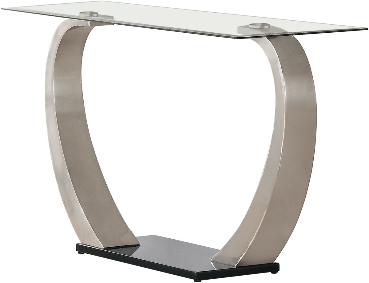 For a classy, elegant surface to display flowers, photos and more, this sofa table is a fabulous choice. A sleek, floating glass top is balanced by the lush, rounded curves of its sturdy, metal support.Read More