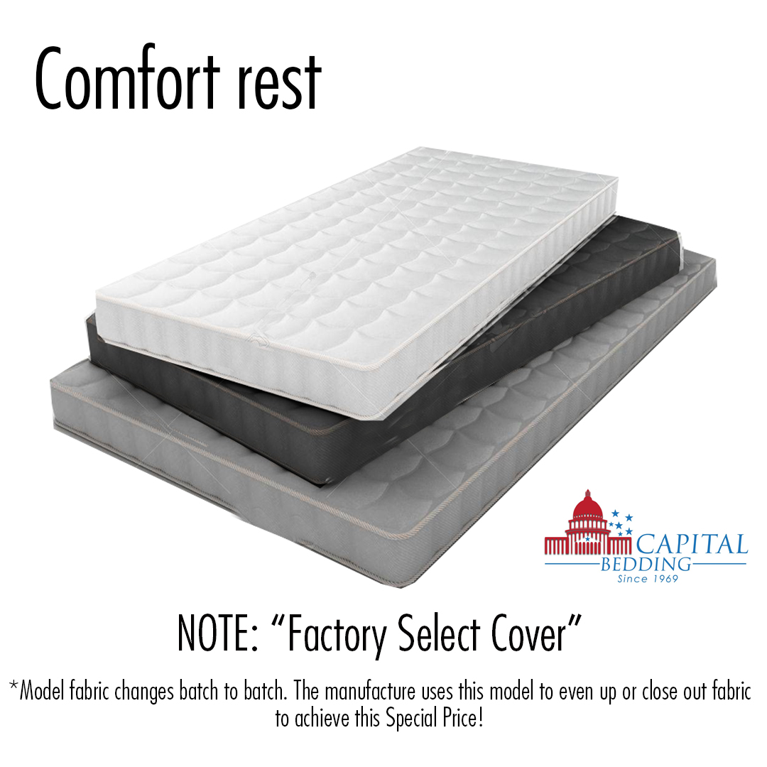 Comfort Rest Economical Foam Mattress Factory select Cover Cover Changes batch to batch. Be aware if you are ordering multiples they will not match the cover can vary widely. The internal components will not change.