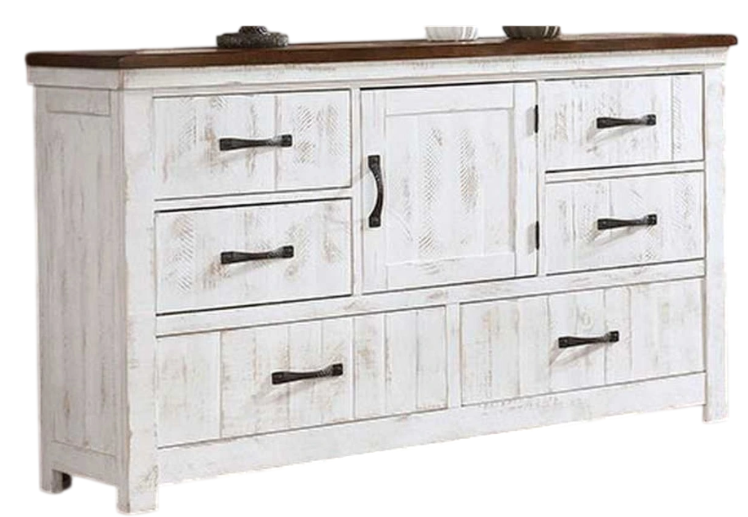 A rustic distressed-white finish highlights this dresser and establishes a mood of antique integrity. Featuring French dovetail construction, felt-lined drawers, and a unique blend of cabinets, this is a dresser to not only enjoy but to take seriously. It is elegance defined.Read More