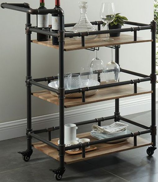 This three tier serving cart is handpicked to match your rustic dining setup. Nothing says industrial more than pipe-inspired design and a metal frame work.