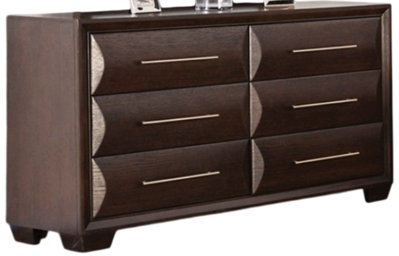 The Furniture of America® Hinwitz Espresso Dresser features a sleek, espresso finish that adds warmth and sophistication to any room. With ample storage space, it offers a practical solution for organizing clothing, linens, or accessories while enhancing your home’s décor with its clean lines and sturdy construction.Read More