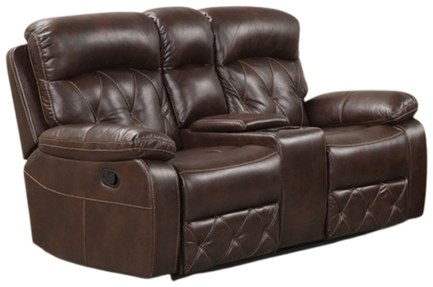The Furniture of America® Osias Brown Manual Reclining Loveseat offers comfort and relaxation with its easy-to-use manual reclining mechanism. Constructed with sturdy materials, it provides durable support and cozy seating, making it a perfect choice for any living room, combining both comfort and functionality in a compact design.Read More
