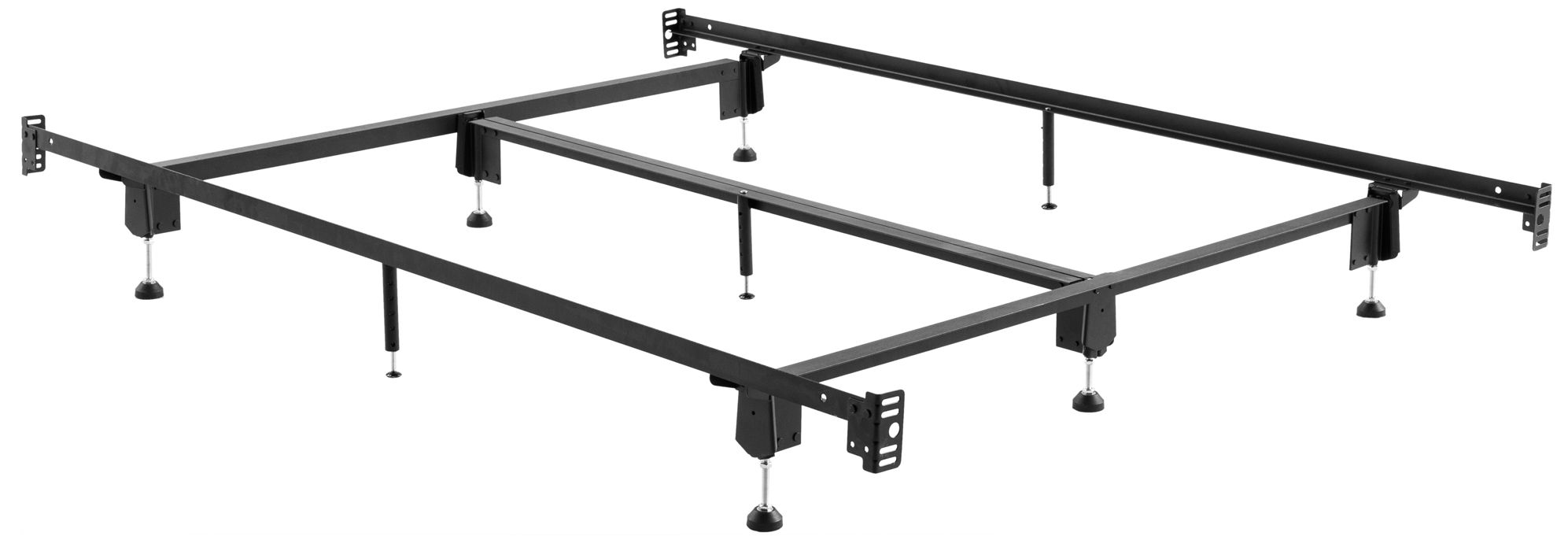Nine adjustable-height glides for headboard and footboard alignment
