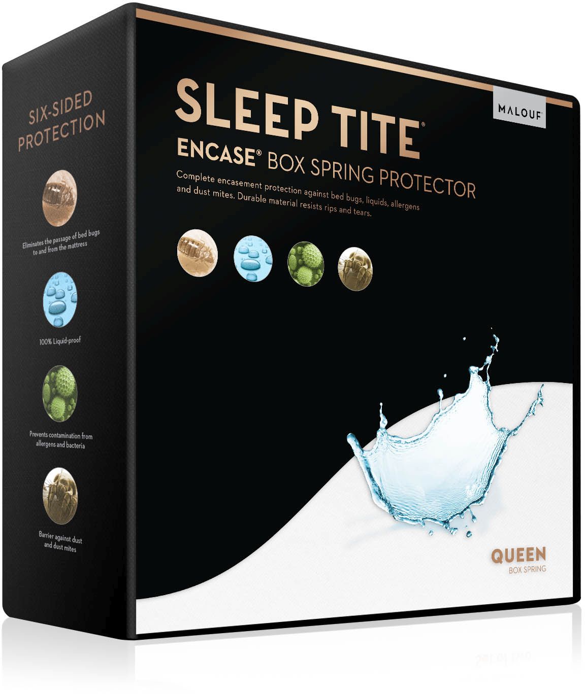 Six-sided protection against bed bugs, liquids, allergens and dust mites