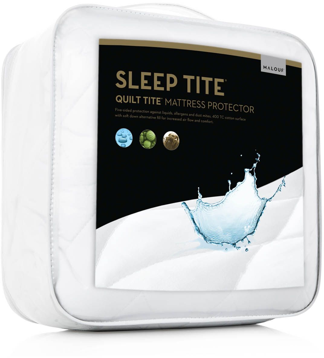 The 400 TC cotton cotton surface and box-stitched quilting add functionality and appeal to the Quilt Tite® mattress protector. A soft layer of down alternative filling helps to create an air layer for better circulation, breathability and comfort.Read More