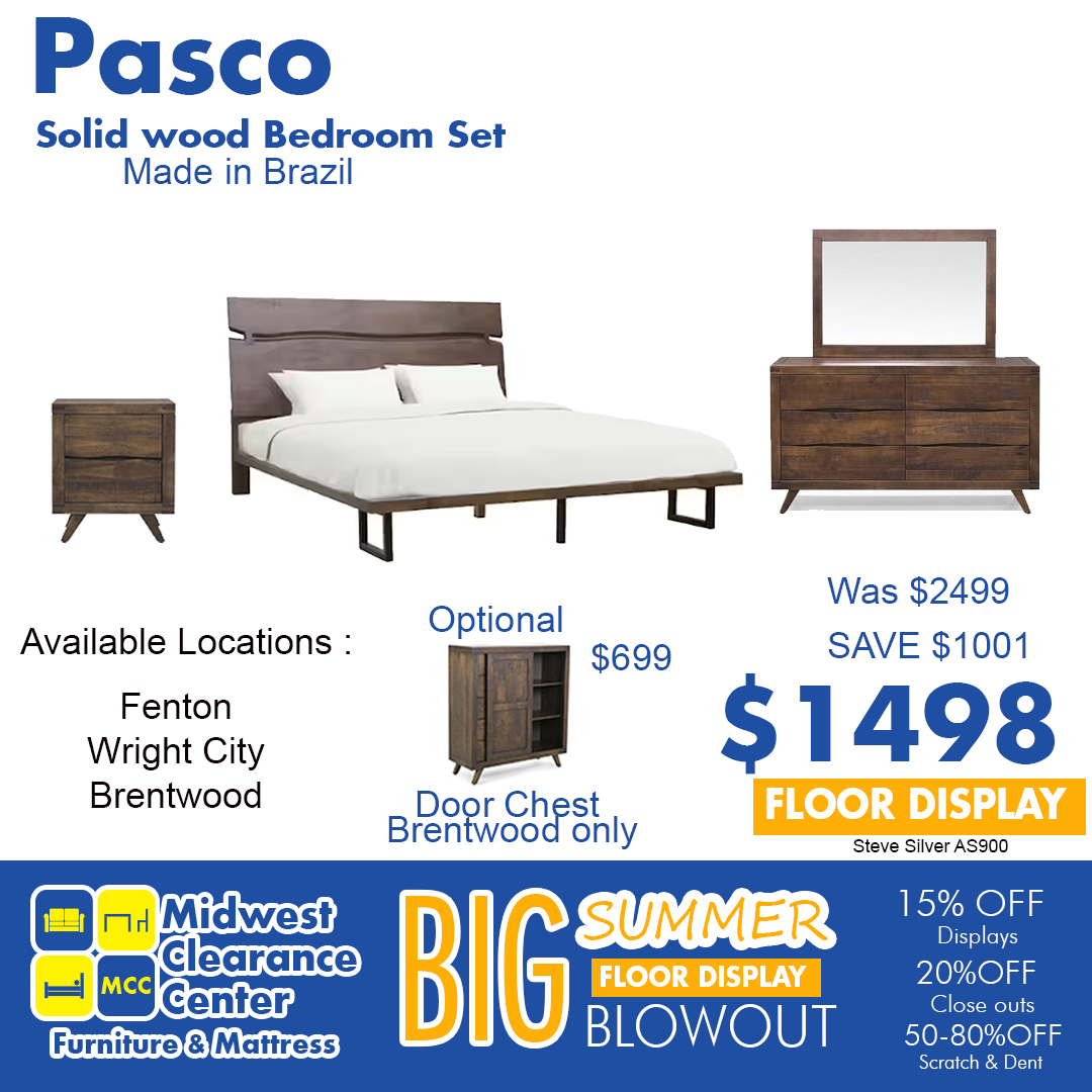 This is a Closeout we are selling stock and the displays at a discount. Pasco perfectly combines elements of exotic styling and contemporary design in a solid wood bedroom collection that is both modern and rustic simultaneously. Drawers feature a live edge that is beautiful and functional for use a a drawer pull. You will find aspects of mission and mid-century modern style in the bed and storage pieces with bowtie accents used to embellish the priimitive styling.Read More