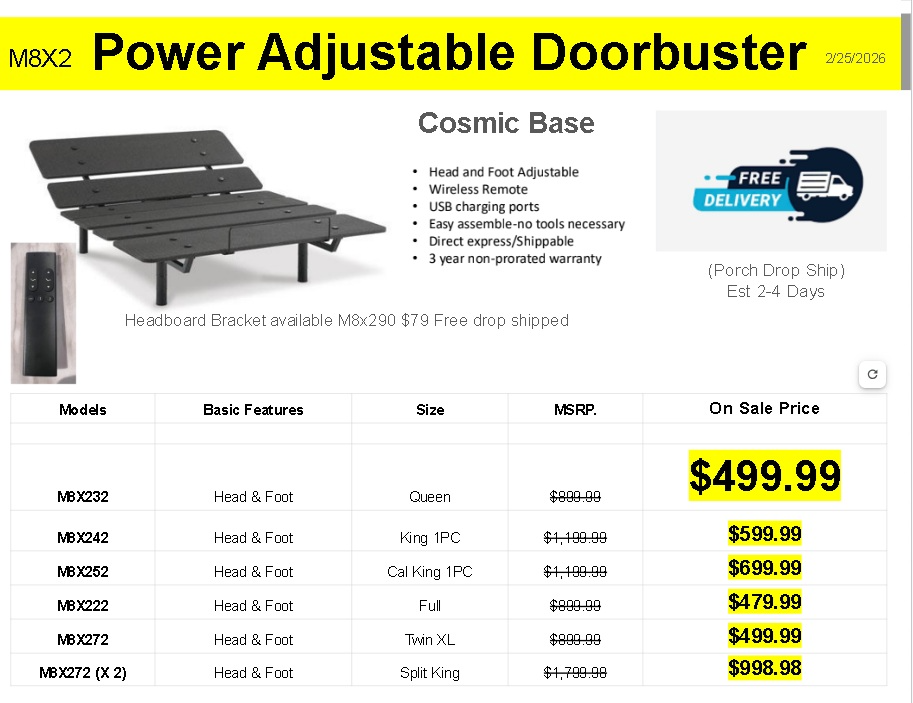 *Adjustable base only, all other products sold separately. Images may not reflect actual size.