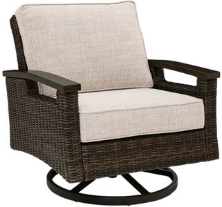 You'll love the Drakes Beach outdoor swivel rocker lounge chair with beautifully textured resin wicker over a sturdy aluminum frame, it brings so much style and warmth to your outdoor space. The thick, comfortable cushions are covered in cleanable, UV-resistant Nuvella® fabric, so you can spend less time worrying and more time chilling.Read More