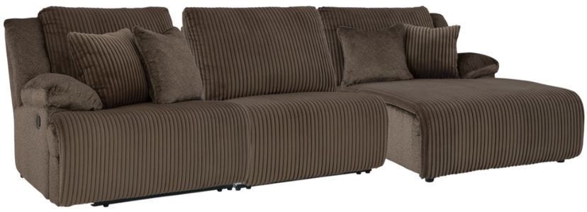 Experience unparalleled comfort with this reclining sectional with chaise. It’s a stylish and invitingly soft look—made all the more appealing by cozy corduroy cushions that feel great and add a touch of texture. The rich chocolate brown upholstery effortlessly blends into your decor, making it a gorgeous addition to your home.Read More