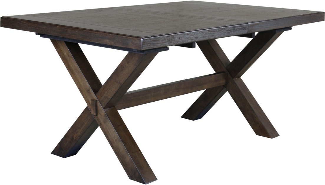 The rustic charm of Astoria is evident in this 80-inch Trestle Table. Casual and warm, the table is constructed of sturdy wood solids and veneers finished with a warm mocha color that evokes the feel of a cozy mountain lodge. The hefty trestle table base features exposed tenons and and a crossed timber beam look for a casual, comfortable feel. The 62-inch table extends to 80 inches with the included 18-inch leaf to seat six comfortably.Read More