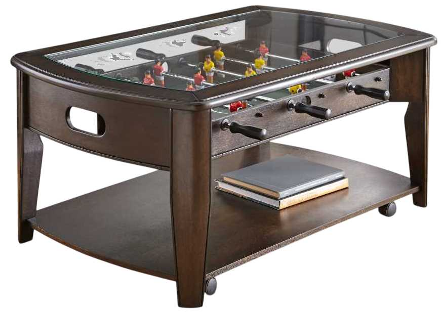 Table does double duty as a cocktail table and fully operating foosball table.