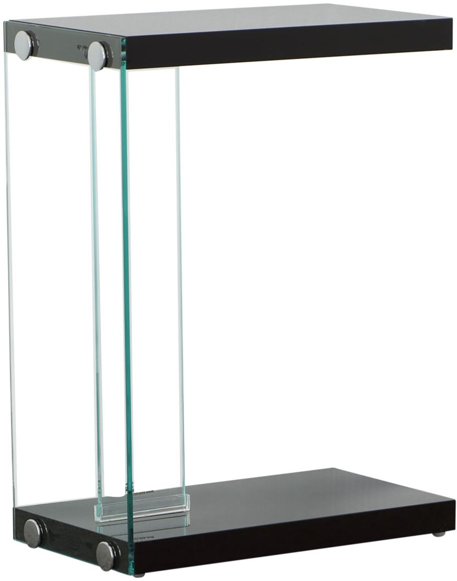 The Elaina Chairside End Table presents a light airy form in an extremely functional “C” table configuration. The Glossy Black finish complements any contemporary environment and the tempered glass and acrylic supports give the table a light footprint that is easy to decorate around.Read More