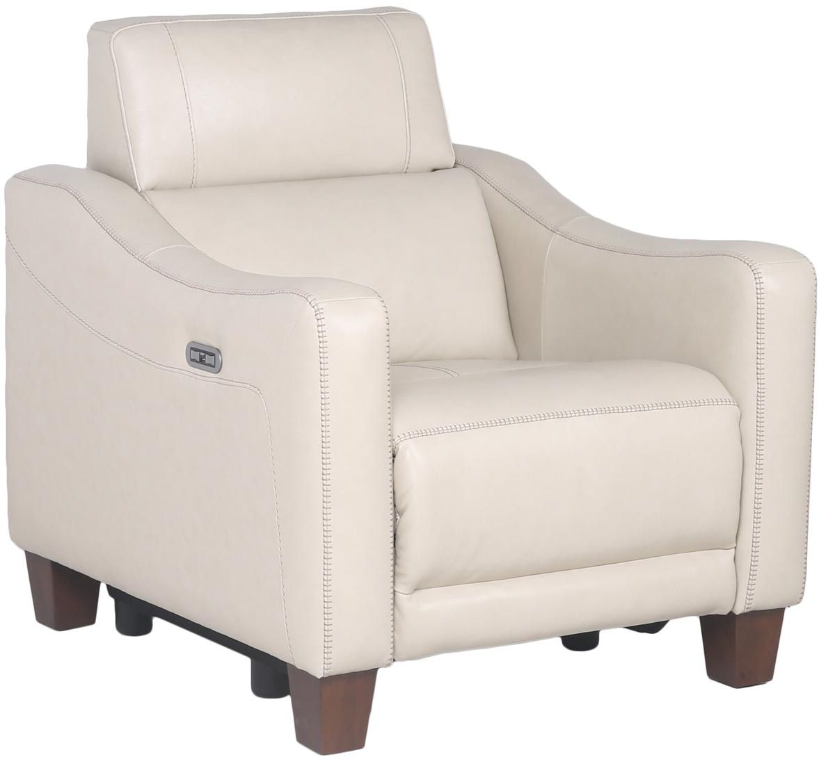 Transitional design in a dual-power leather recliner. This chair will quickly become everyone’s favorite with its top grain leather, stylish high-leg design and wall-saver reclining mechanism that ensures you won’t bang up any walls. The ivory color matches virtually any decor scheme while ensuring comfort every time.Read More