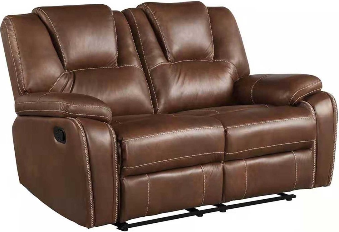 The Katrine Loveseat showcases the best in manual motion upholstery with this dual reclining ensemble. This Loveseat is covered in a luxurious chestnut brown faux-leather that features baseball stitching for an extra special touch.Read More