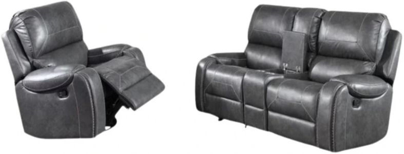 | Keily Manual Reclining Sofa with Drop-Down Console, Gray (KE800SG) | 86"W x 39"D x 41"H/218.44cmW x 99.06cmD x 104.14cmH |