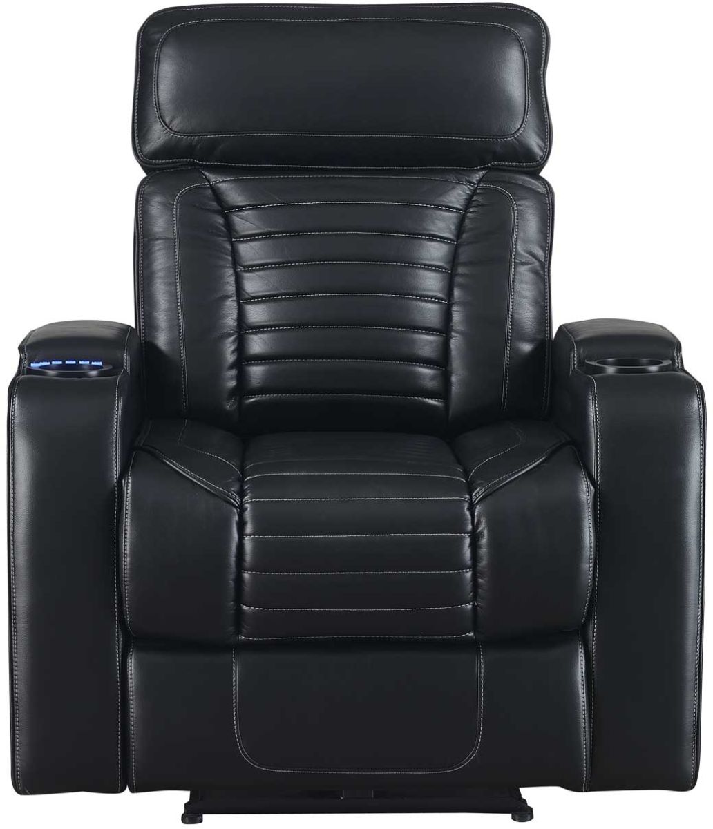 This sporty recliner boasts power footrest and power headrest in a package that is the most comfortable you will find anywhere. Horizontal channeled back and extra padding on the Headrest and armrest add plush comfort to this special recliner.Read More