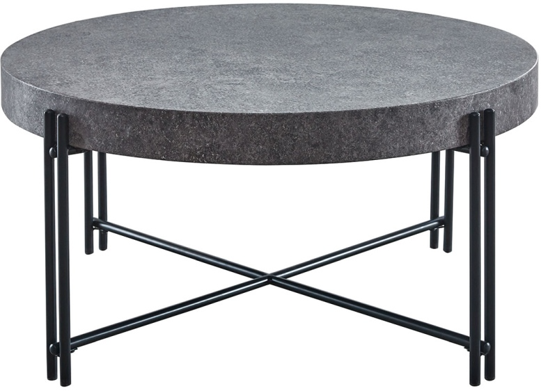 Steve Silver Co. Morgan Grey Faux Concrete Top Round Cocktail Table with Black Base