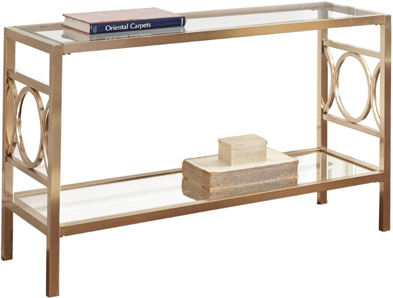 Add a little Hollywood glitz and glamour to your living room with the Olympia occasional tables. Who says your living tables have to be ordinary? This occasional set is sure to steal the show with contemporary styling, gold chrome, glass top and mirrored bottom shelf.Read More