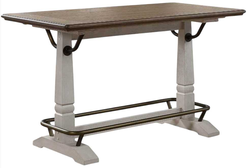 A casual two-tone finish and heritage farmhouse style are the hallmarks of the Pendleton counter height gathering table. Ivory and honey oak tones give an instant feeling of home while the plank-effect table and a saloon-style galley rail make the table feel like an instant time-treasured heirloom.Read More