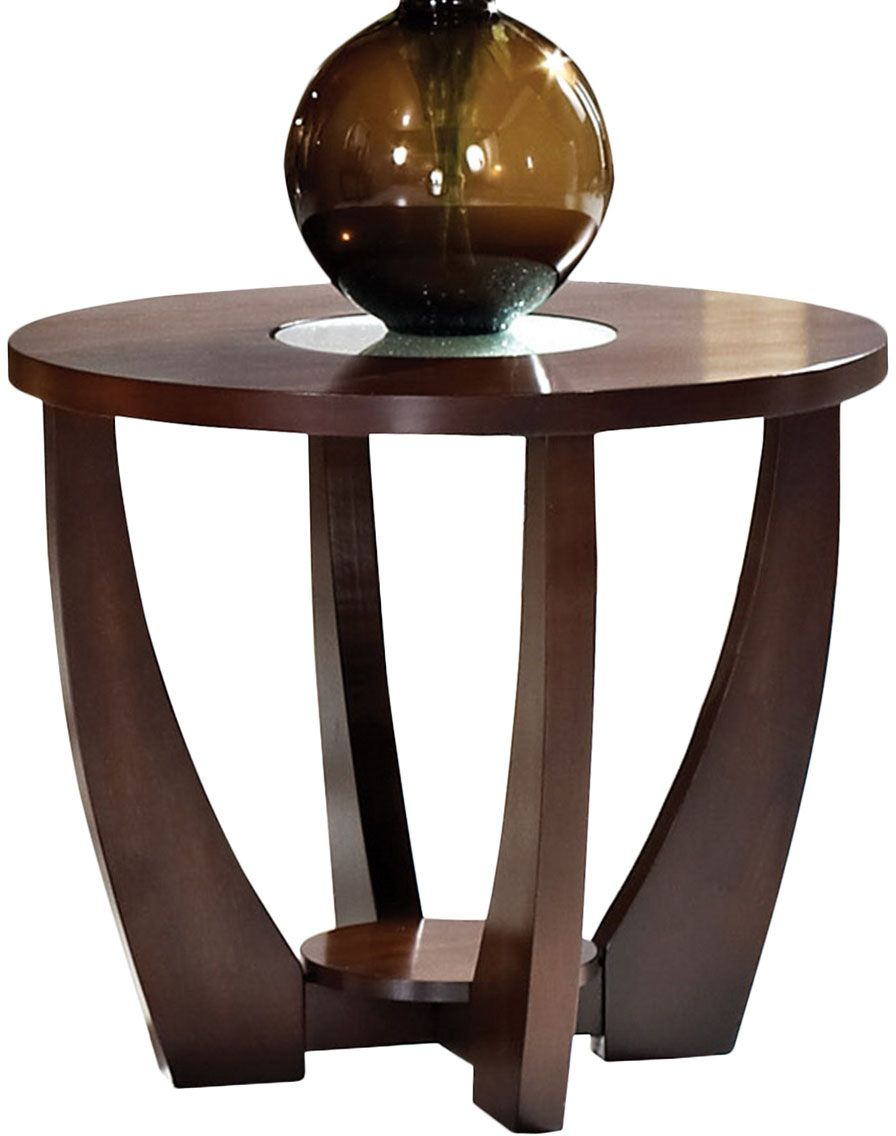 A bold expression of contemporary style, these Rafael occasional tables really set the mood for a modern interpretation for style. Soft flowing shapes define the collection with round tops highlighted with crackled glass tops that are a real show-stopper. The merlot cherry finish gives the group a sleek yet warm feel.Read More