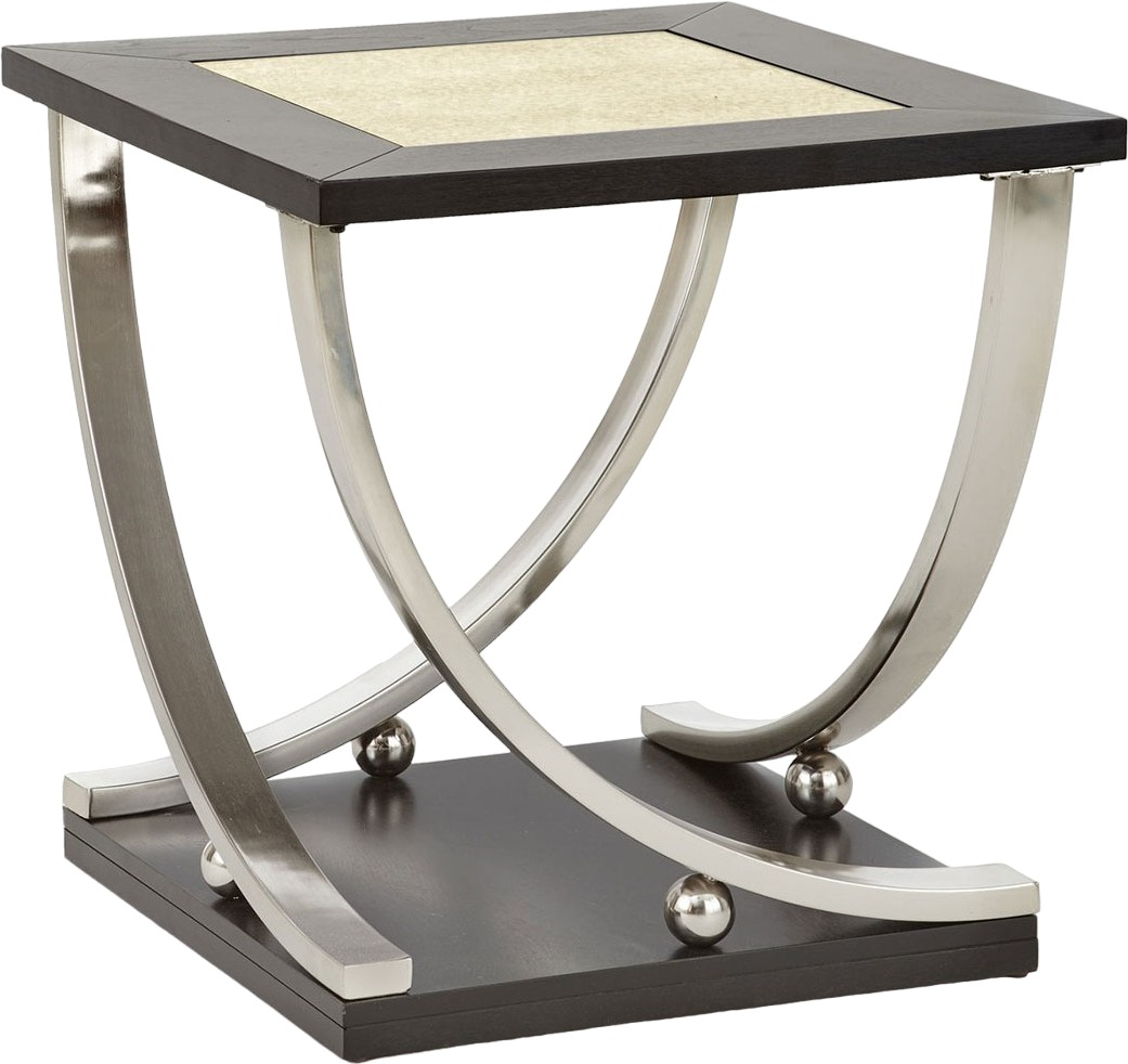 With its transitional styling, Ramsey creates quite a statement in any living area. Sweeping stainless steel support legs create a dramatic effect that is beautifully complemented by the antiqued mirror top insert. This dichotomy of old world meets new age gives the collection a classic, yet up-to-date feel that will brighten any room.Read More