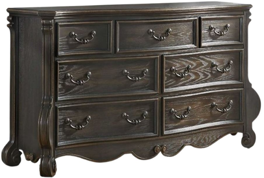 Opulent traditional styling in a Dresser with room for storage. With details that will dress up your bedroom, Rhapsody features a beautiful shaped front with fluted pilasters and scrolled legs in a multi-step molasses finish with antiqued finish rub-through that are reminiscent of fine antiques. Use alone or pair with the Rhapsody Mirror.Read More